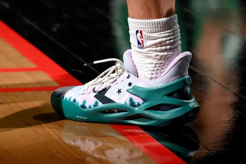 比赛中,普里查德上脚个人专属俄勒冈配色Converse All-Star BB Trilliant CX PE。